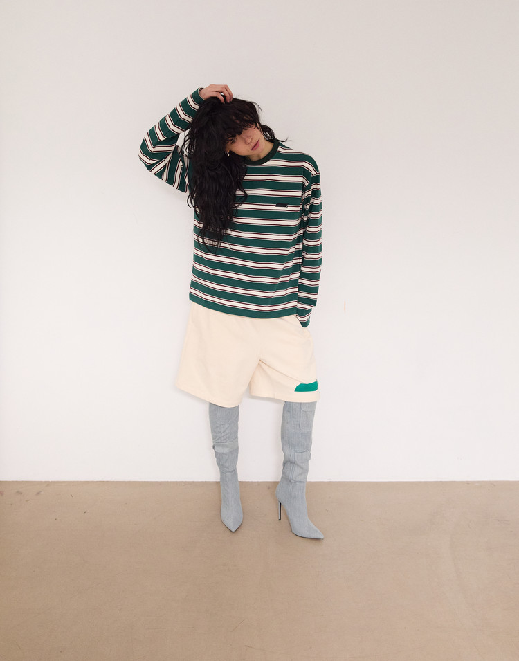 New Symbol Logo Striped Long T-Shirt - GREEN