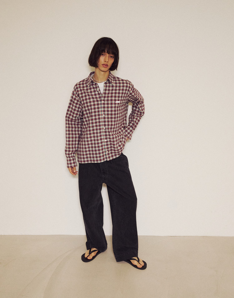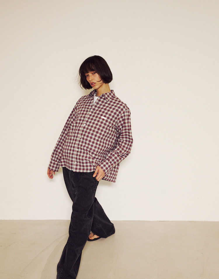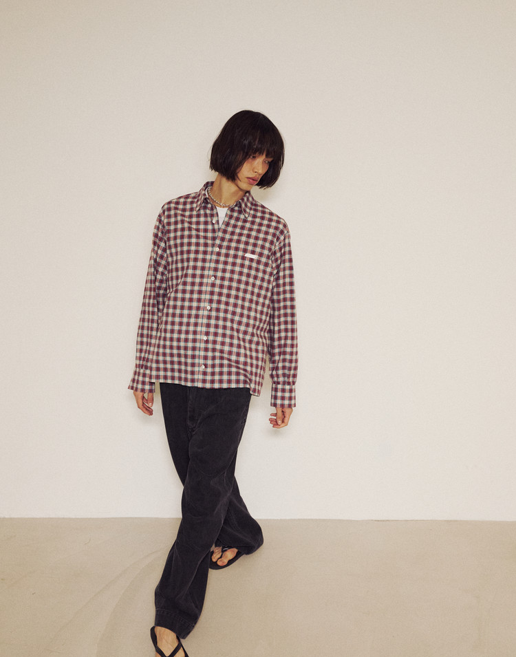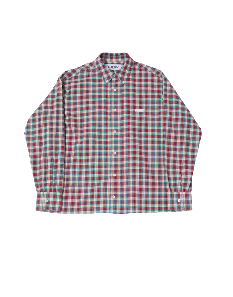 New Symbol Check Shirring Shirt - RED