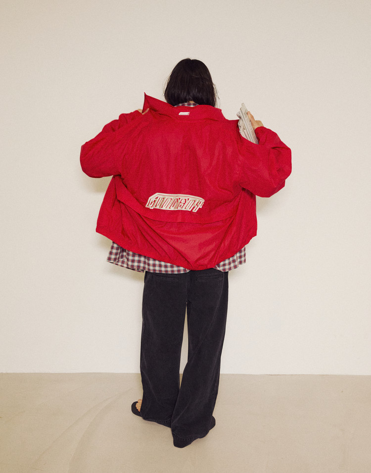 L SIZE(CM): SHOULDER 54CM, CHEST 62CM, SLEEVE 65.5CM, LENGTH 73CM
