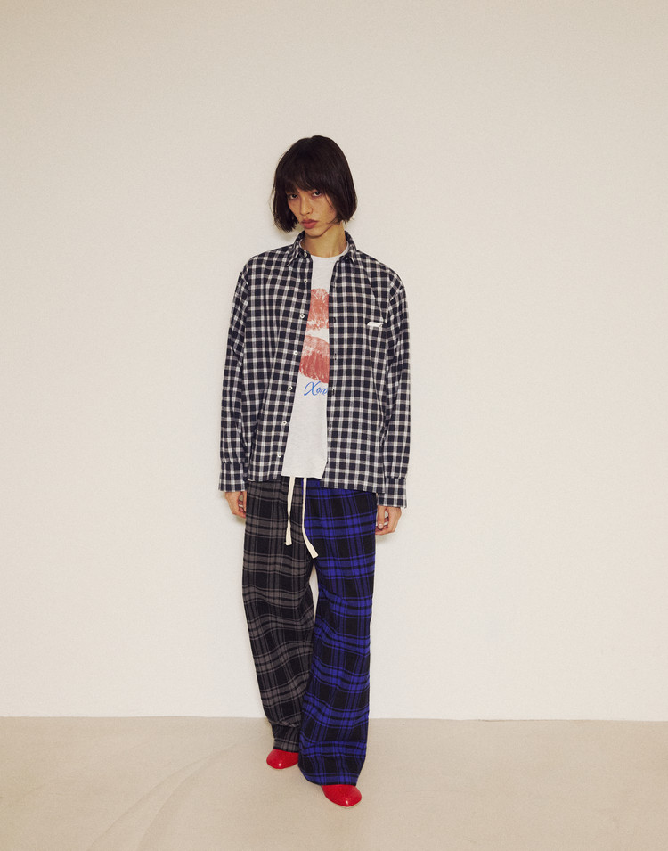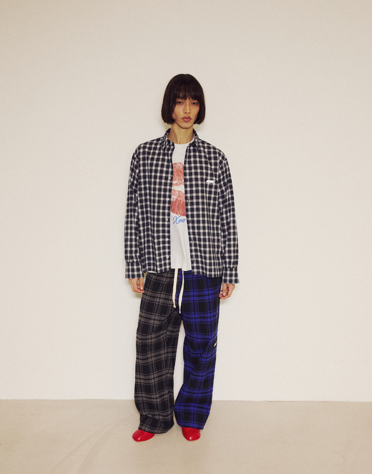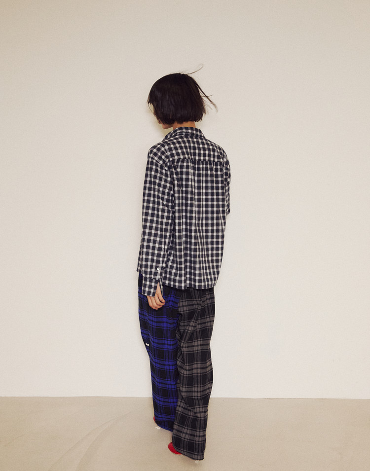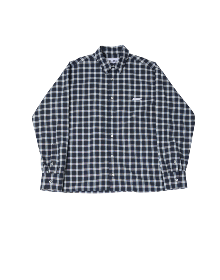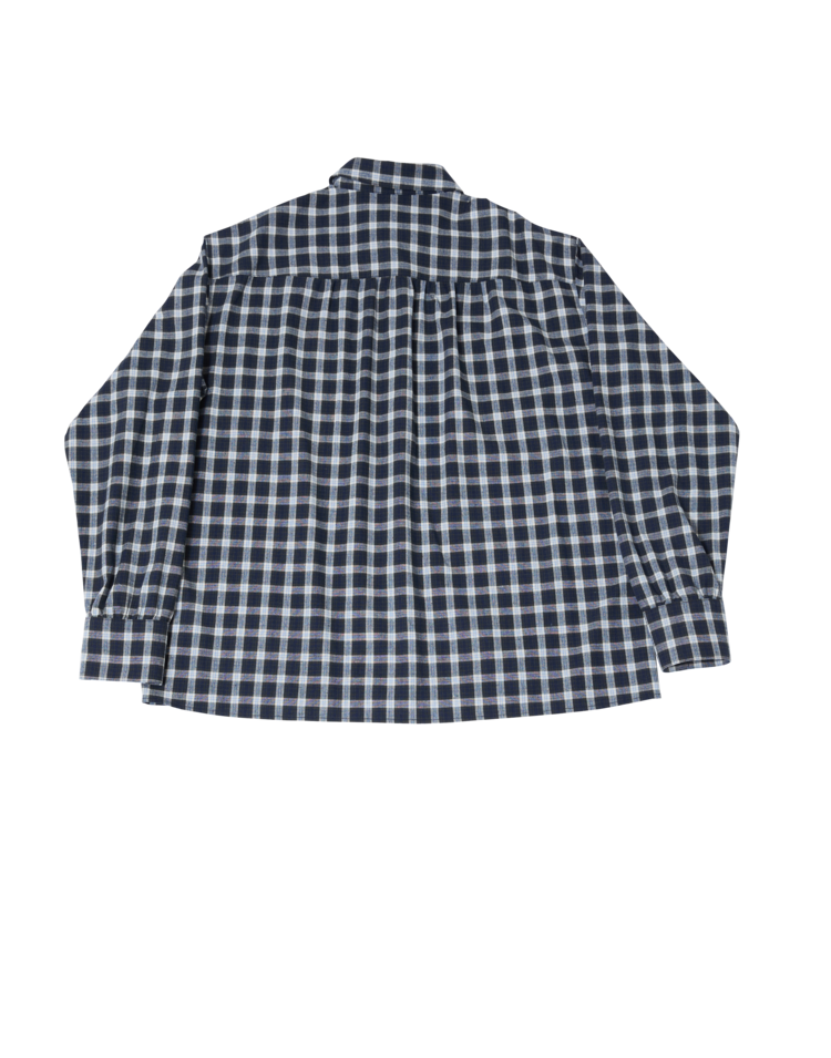 New Symbol Check Shirring Shirt - NAVY
